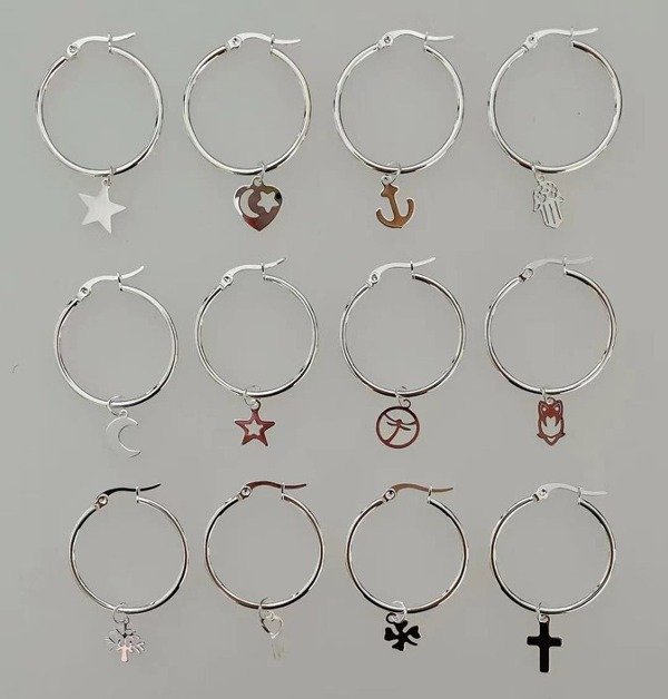 AROS DE ACERO BLANCO C/DIJE COLGANTE X PAR 1428-4