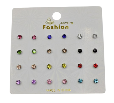 AROS X 12 PAR STRASS COLORES EN CARD CHICO PLATEADO 1774-2