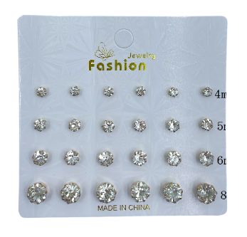 AROS X 12 PAR STRASS TRANSP.EN CARD 3 TAMAÑOS DORADO 1775-7