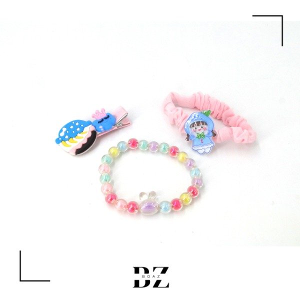 SET INF PULSERA PERLA COLOR CON PICO Y SCUNZY X SET - 1857-3